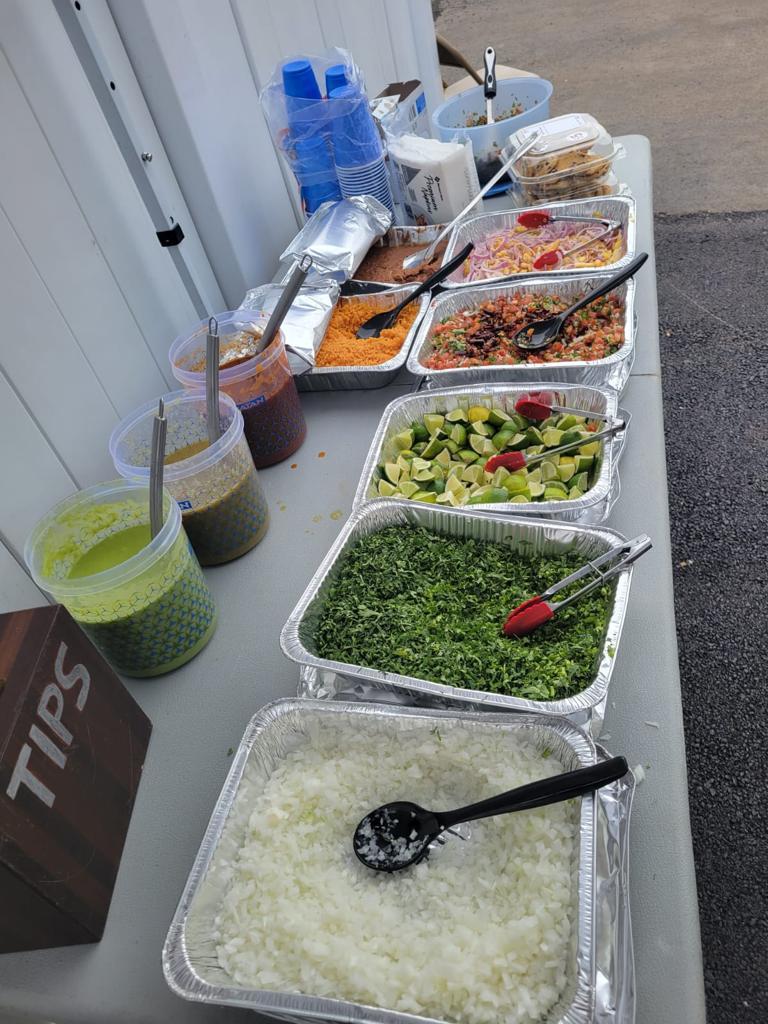 Cebolla, Cilantro, Limones, cebolla morada, arroz, frijoles, Chiles jalapeños, güeros, Tortillas.